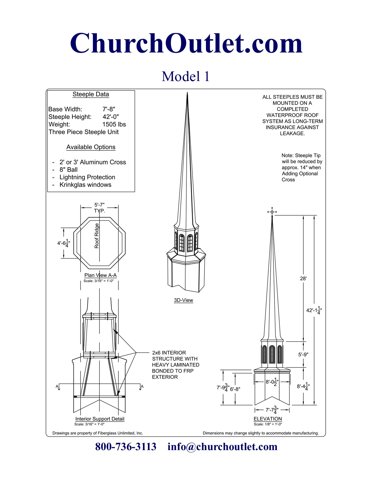 If you still have questions about purchasing a fiberglass steeple feel free to contact us.
