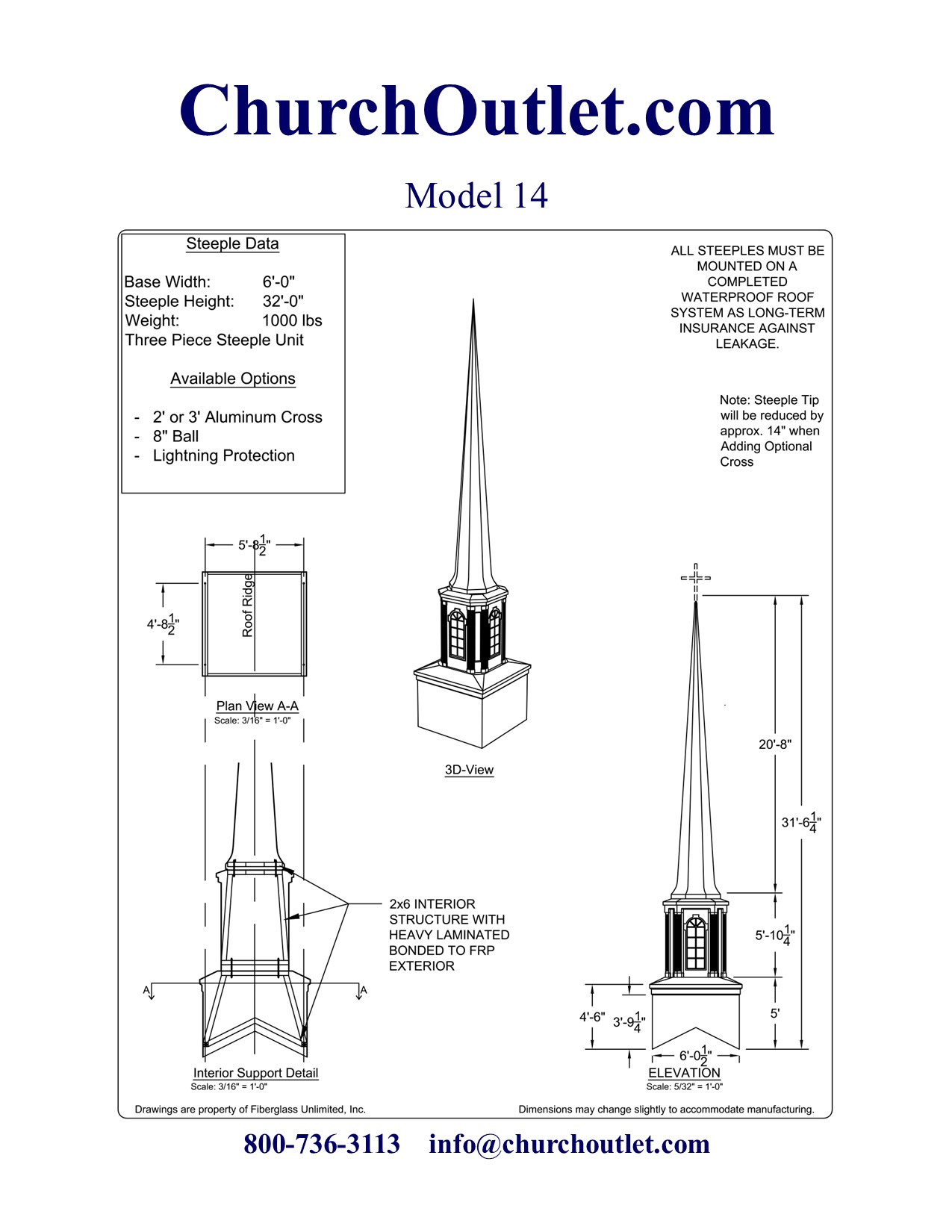 If you still have questions about purchasing a fiberglass steeple feel free to contact us.