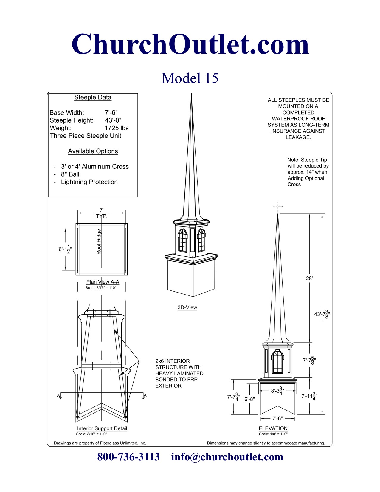 If you still have questions about purchasing a fiberglass steeple feel free to contact us.