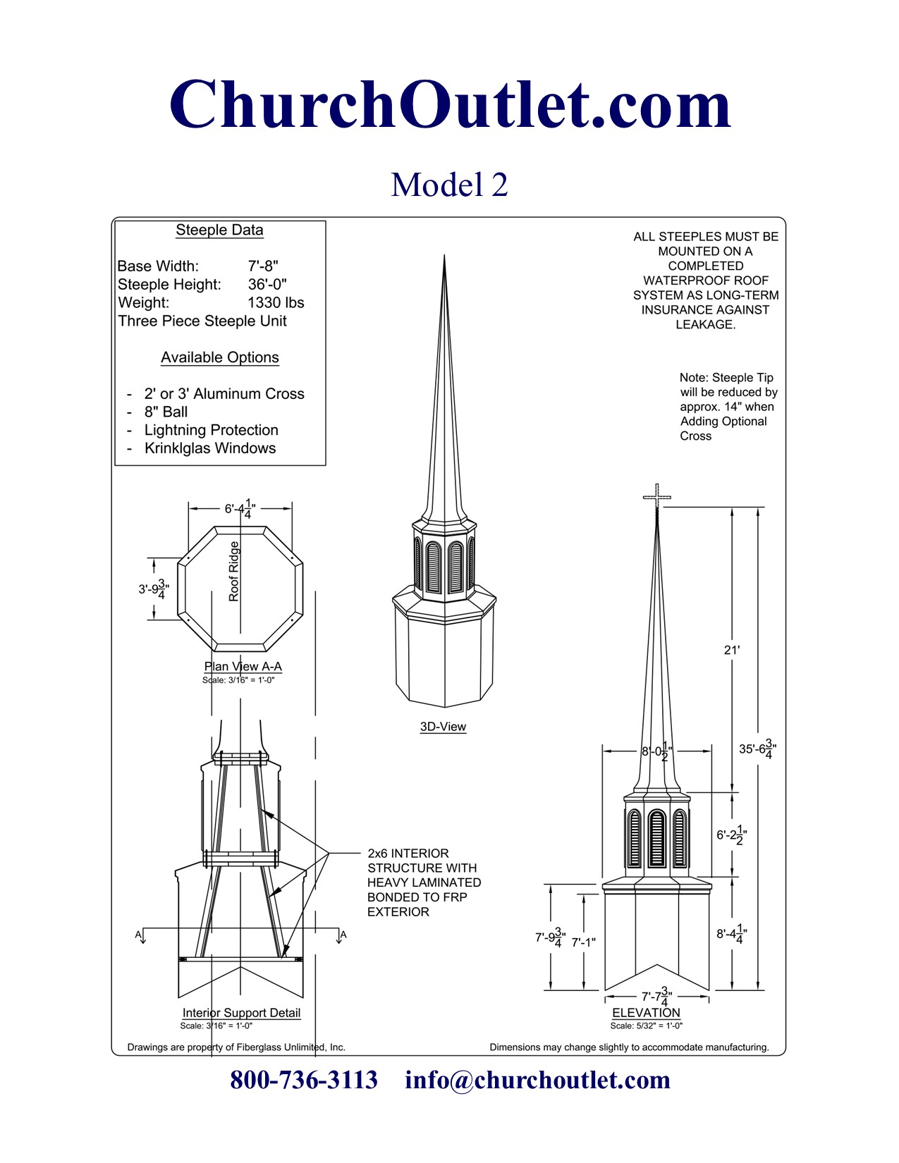 If you still have questions about purchasing a fiberglass steeple feel free to contact us.