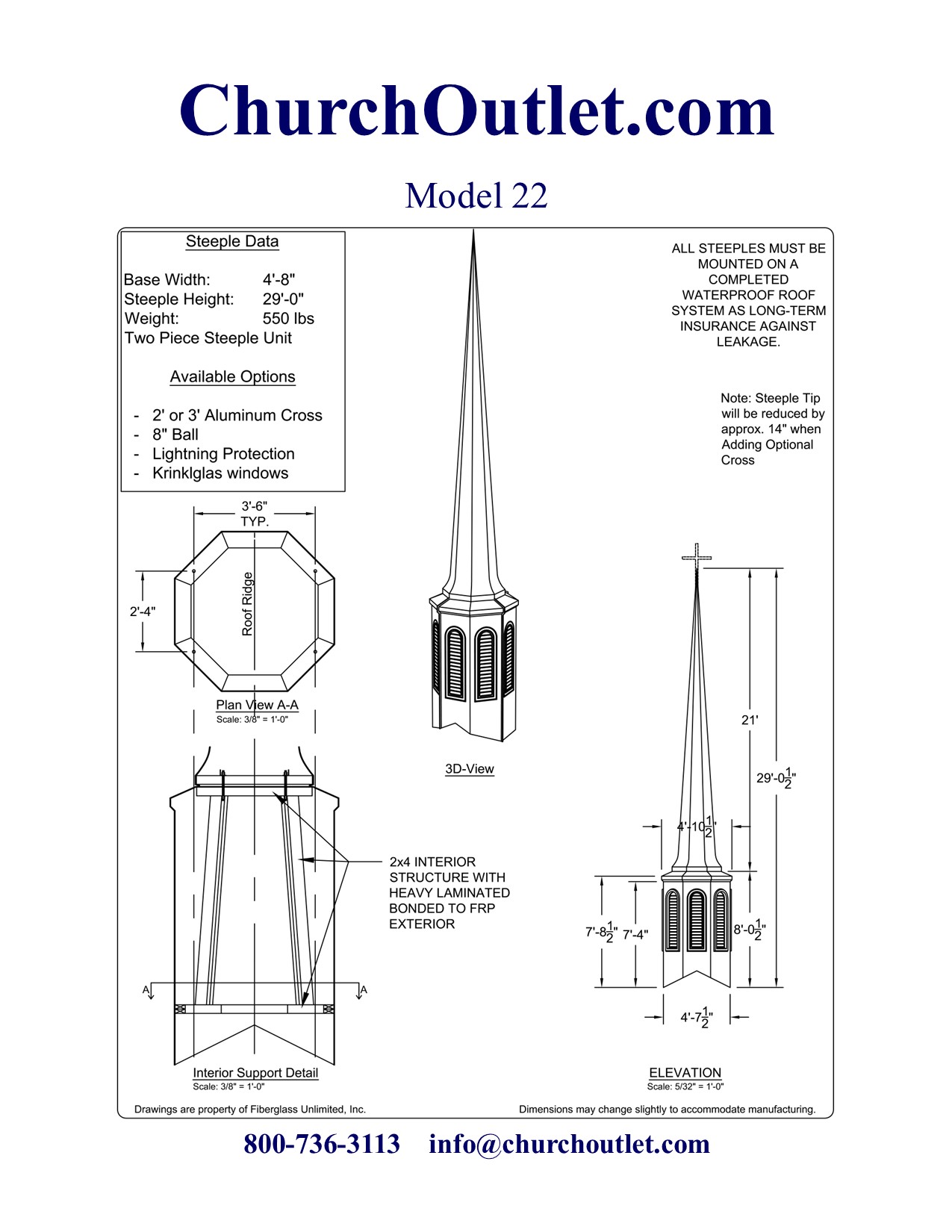 If you still have questions about purchasing a fiberglass steeple feel free to contact us.
