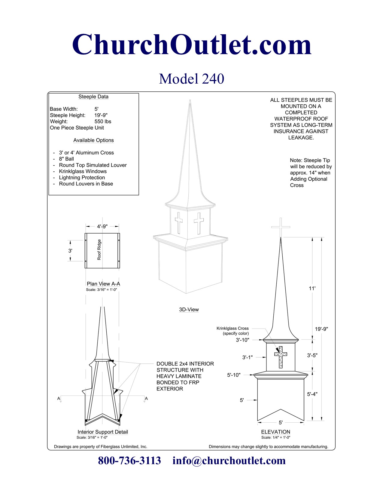 If you still have questions about purchasing a fiberglass steeple feel free to contact us.