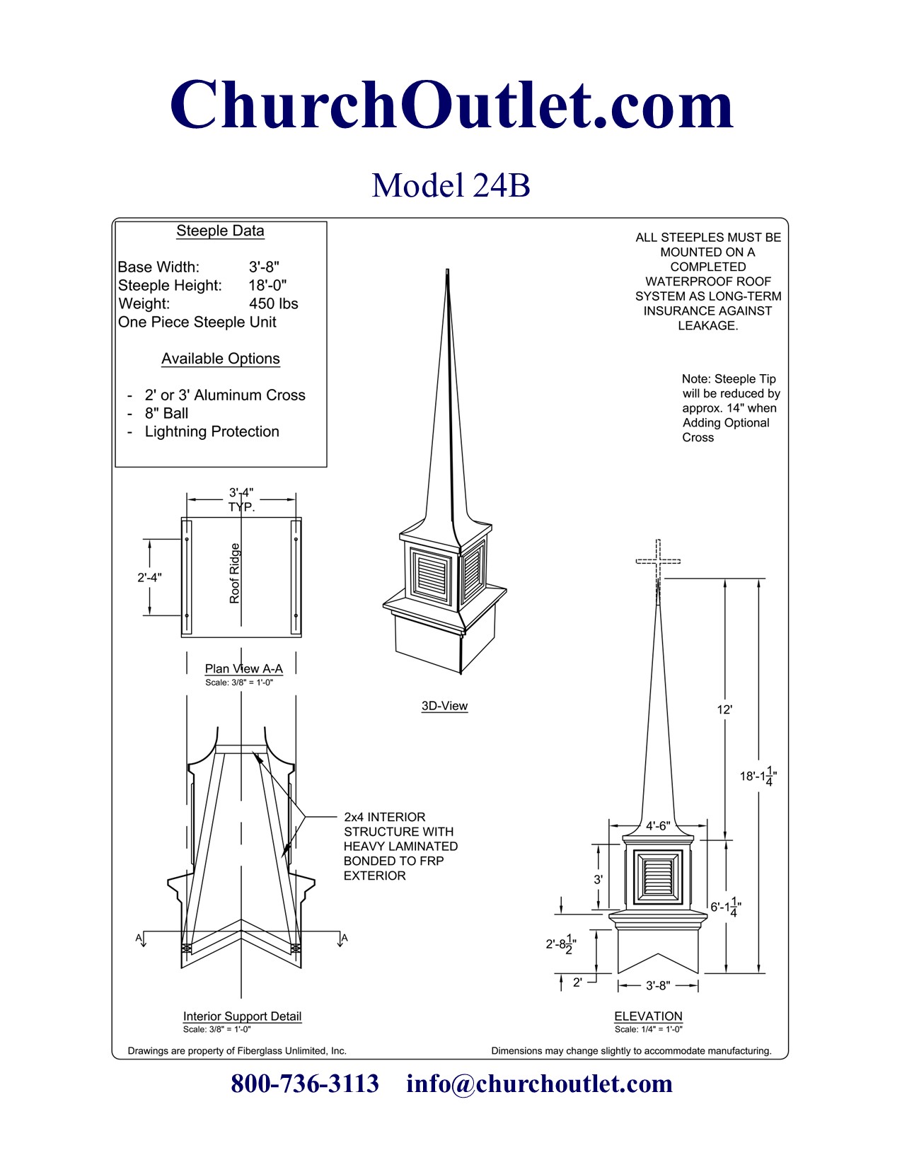 If you still have questions about purchasing a fiberglass steeple feel free to contact us.