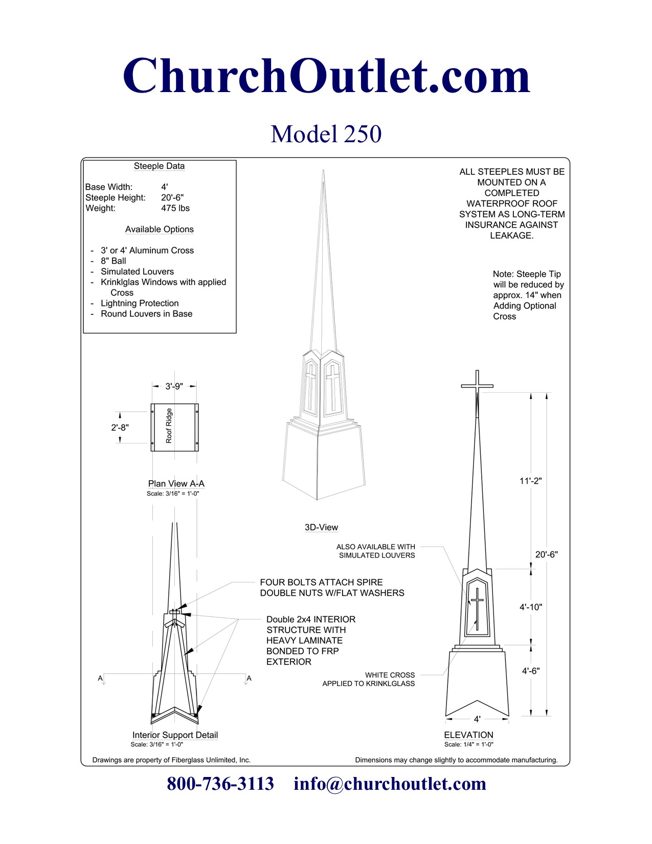 If you still have questions about purchasing a fiberglass steeple feel free to contact us.