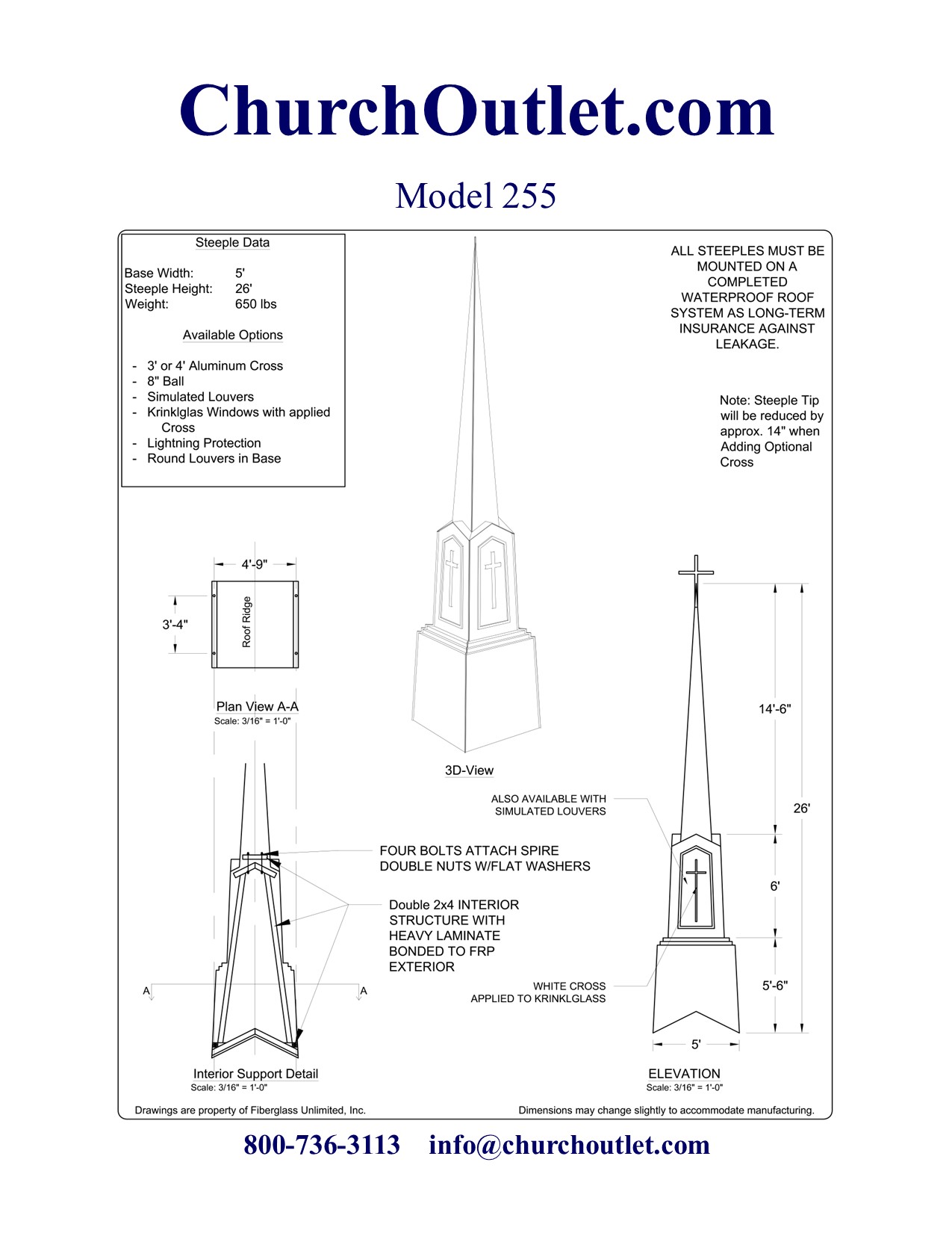 If you still have questions about purchasing a fiberglass steeple feel free to contact us.