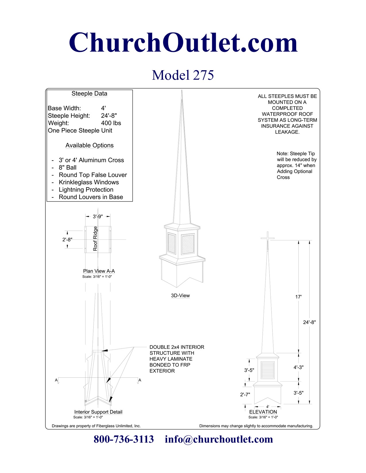 If you still have questions about purchasing a fiberglass steeple feel free to contact us.