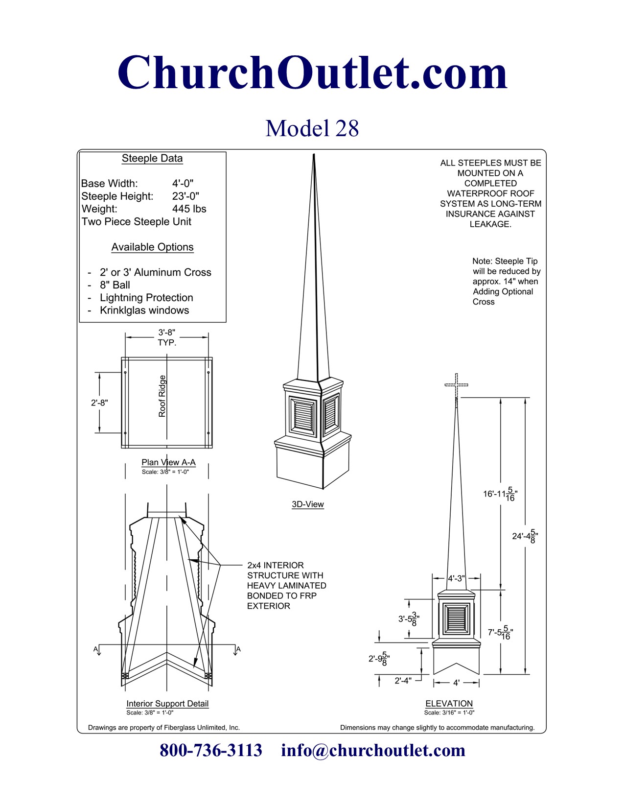 If you still have questions about purchasing a fiberglass steeple feel free to contact us.