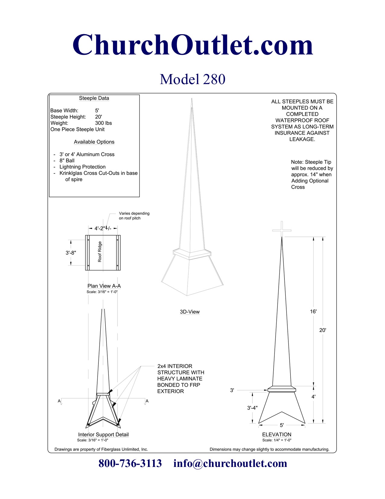 If you still have questions about purchasing a fiberglass steeple feel free to contact us.