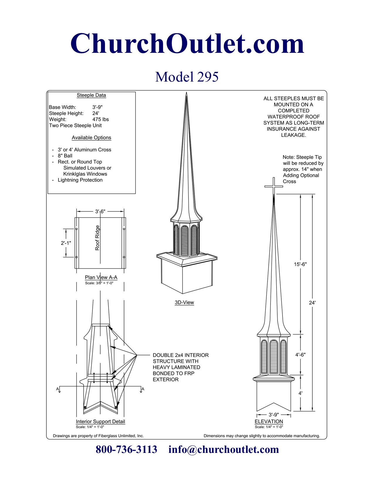 If you still have questions about purchasing a fiberglass steeple feel free to contact us.