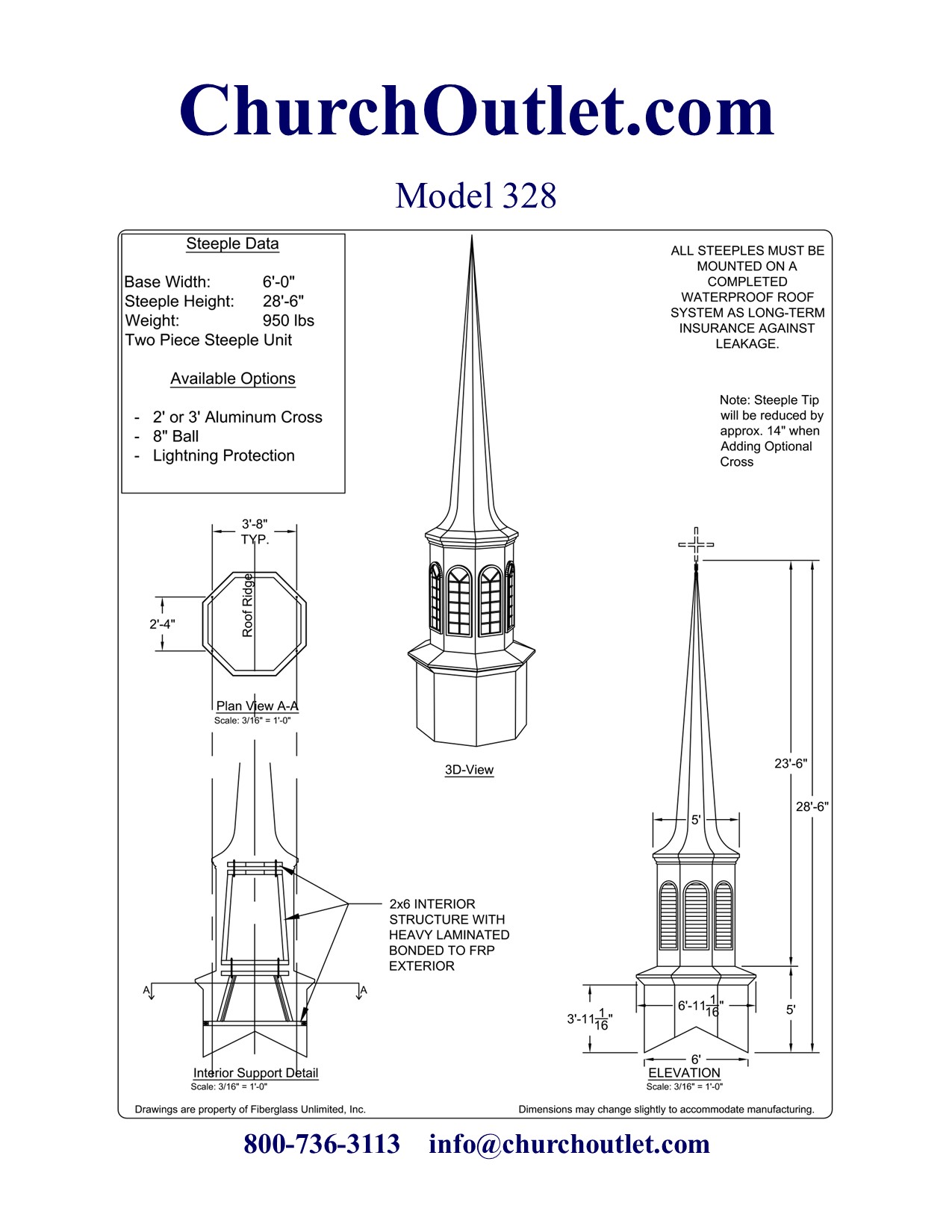 If you still have questions about purchasing a fiberglass steeple feel free to contact us.