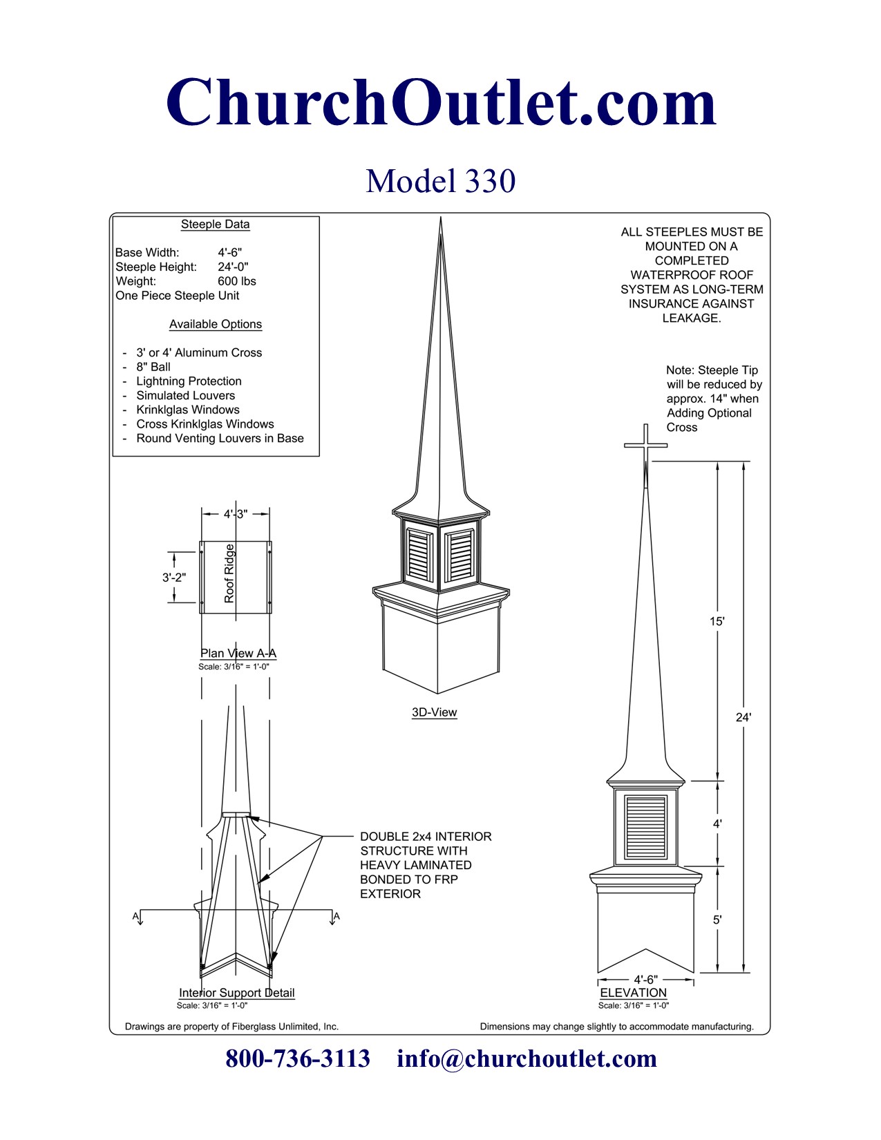 If you still have questions about purchasing a fiberglass steeple feel free to contact us.