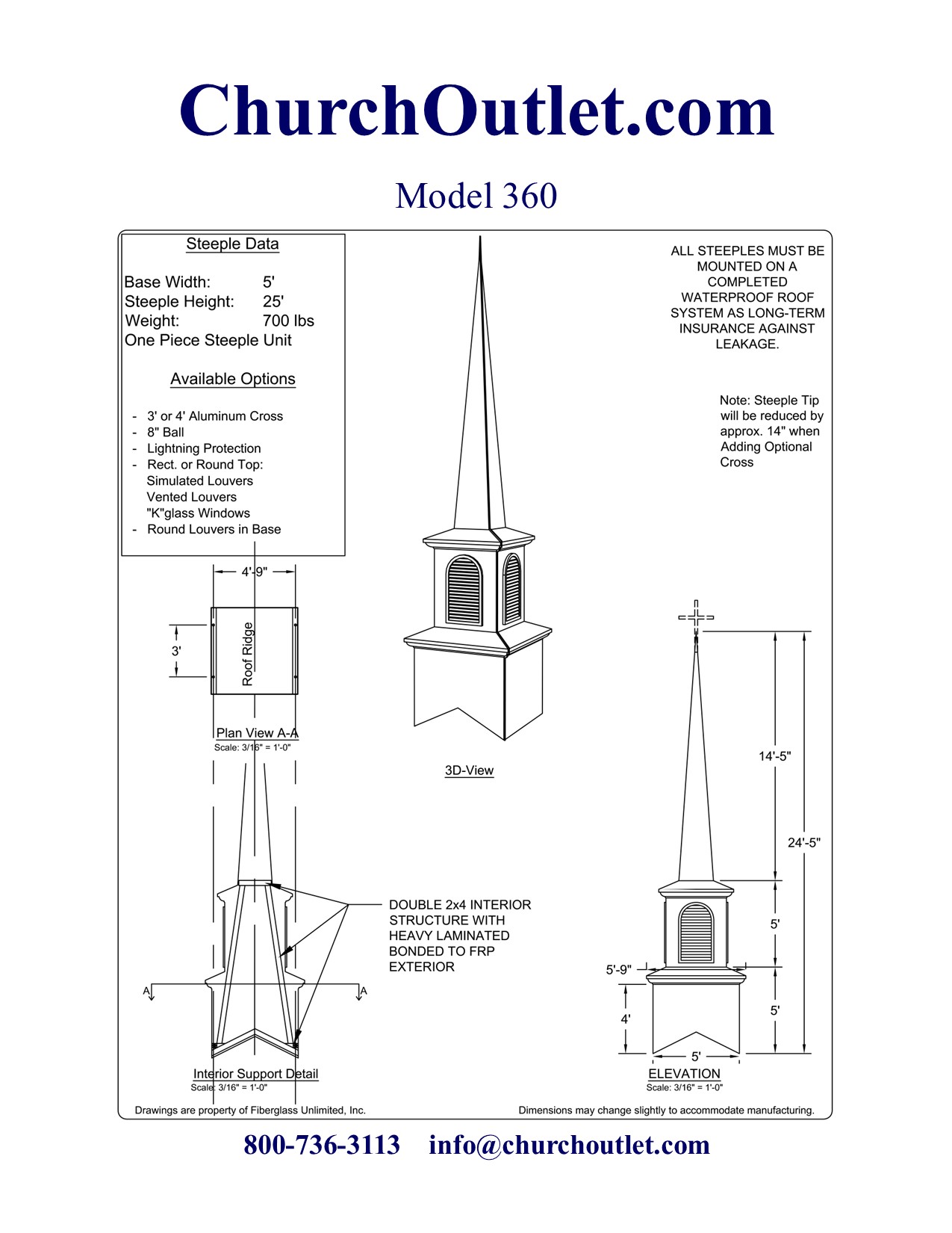 If you still have questions about purchasing a fiberglass steeple feel free to contact us.
