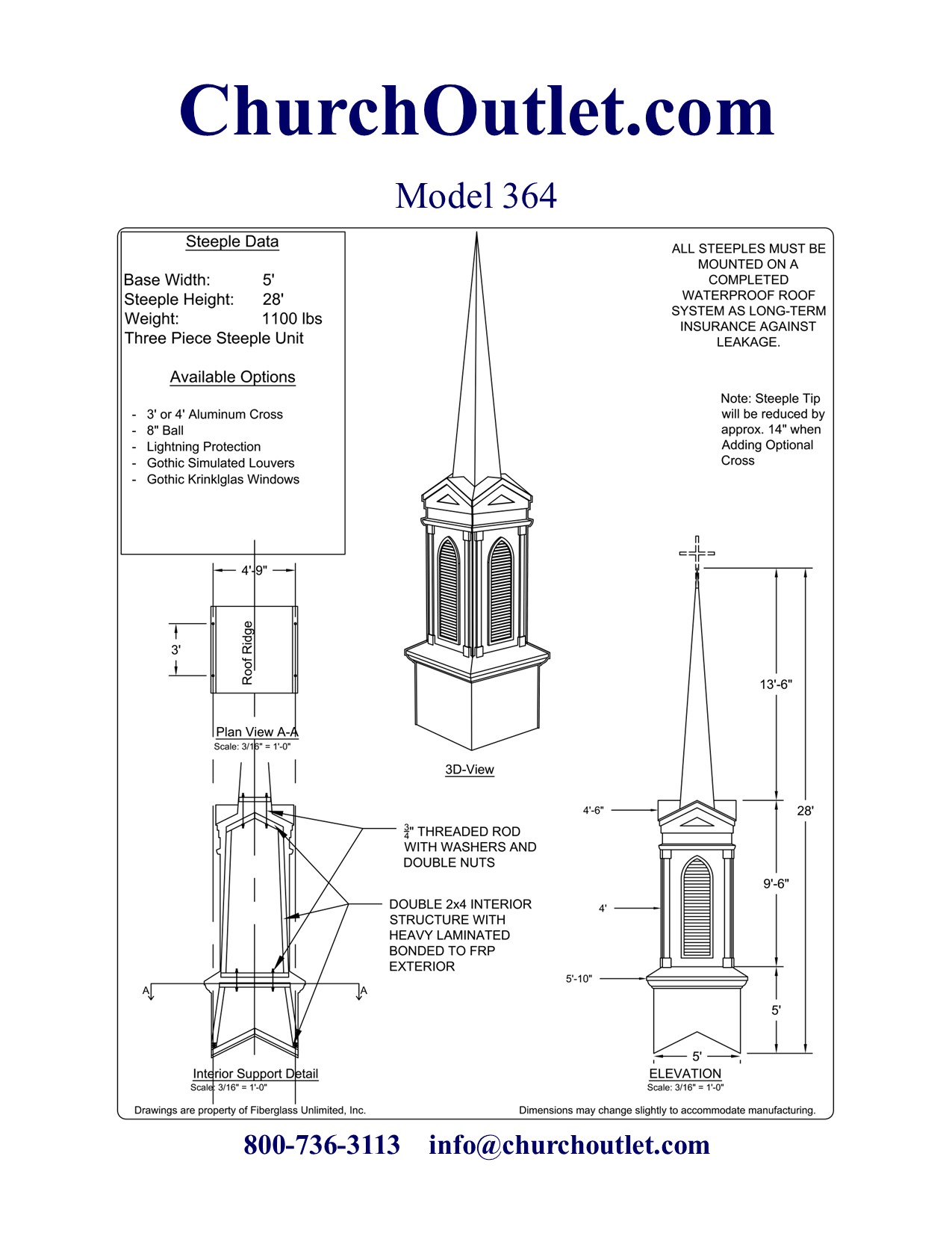 If you still have questions about purchasing a fiberglass steeple feel free to contact us.
