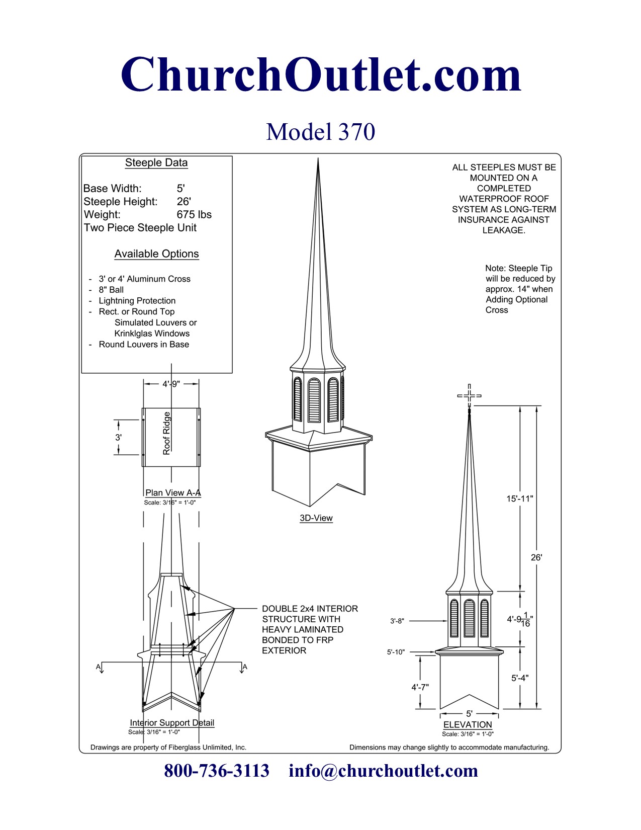 If you still have questions about purchasing a fiberglass steeple feel free to contact us.