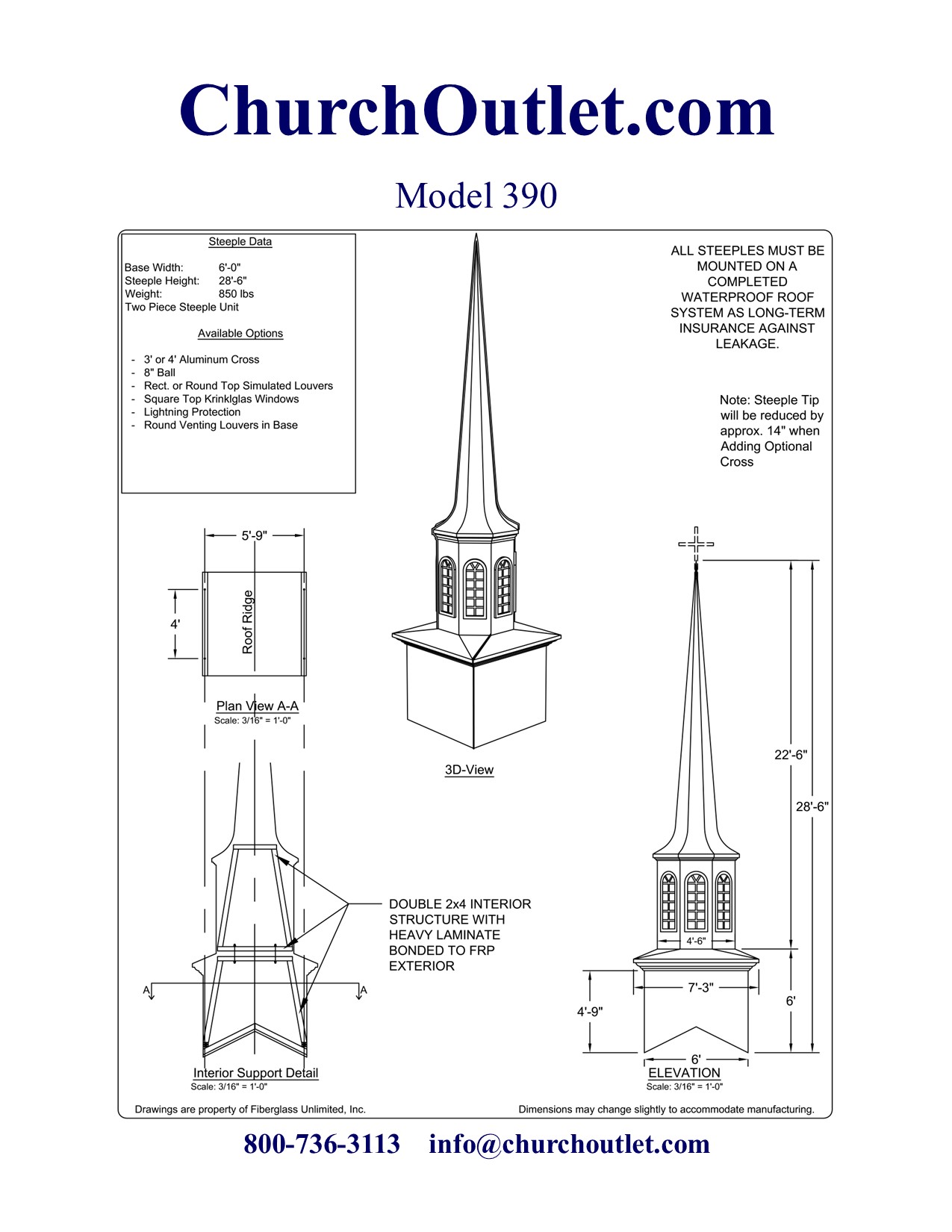 If you still have questions about purchasing a fiberglass steeple feel free to contact us.