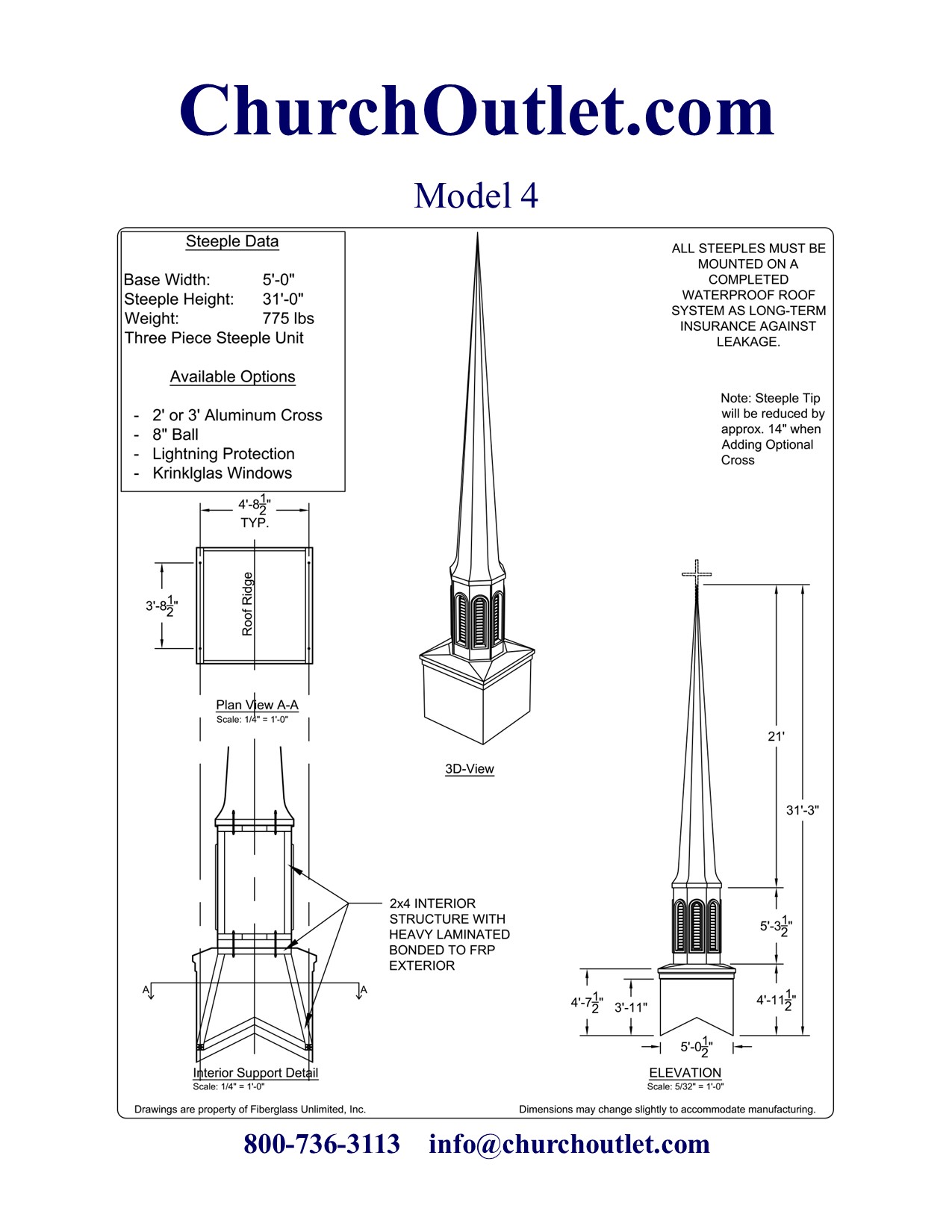 If you still have questions about purchasing a fiberglass steeple feel free to contact us.