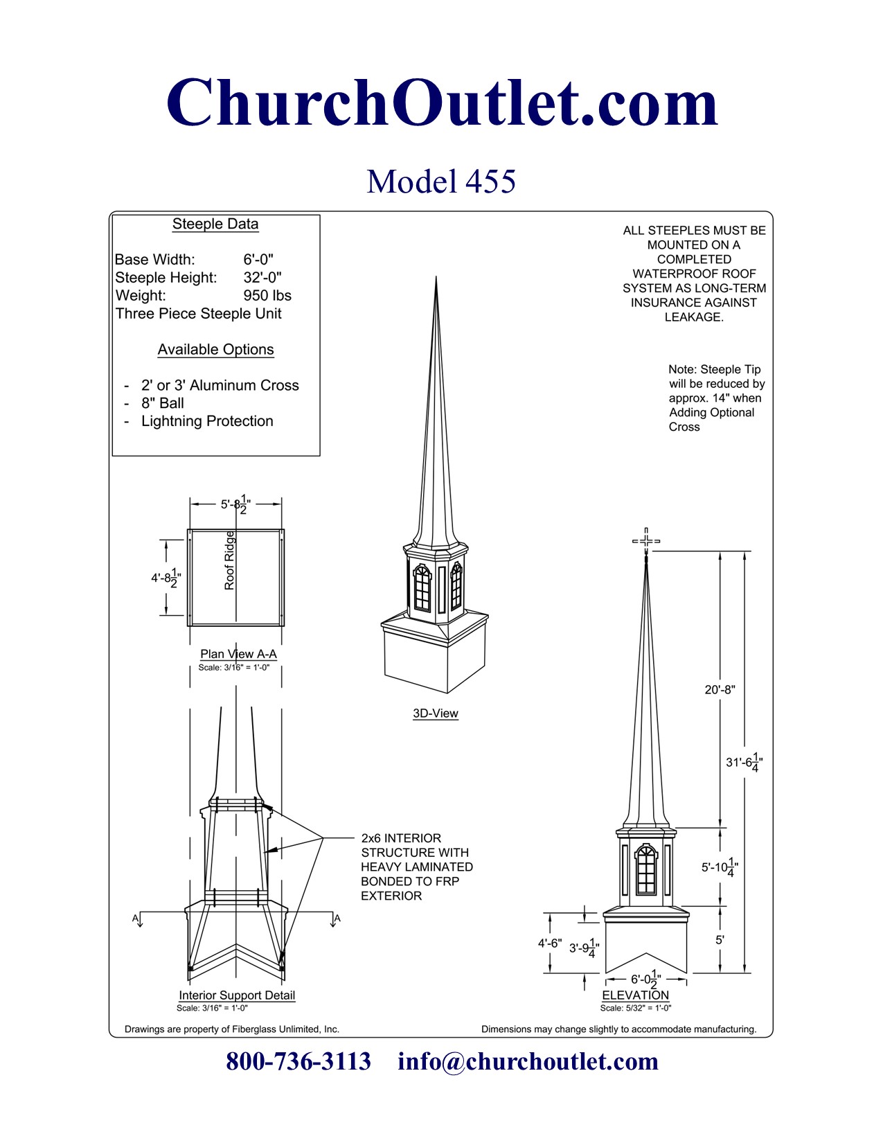 If you still have questions about purchasing a fiberglass steeple feel free to contact us.