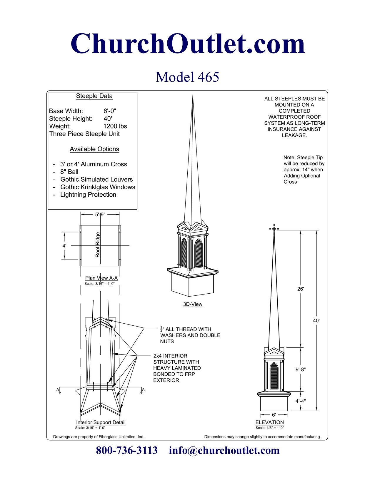 If you still have questions about purchasing a fiberglass steeple feel free to contact us.