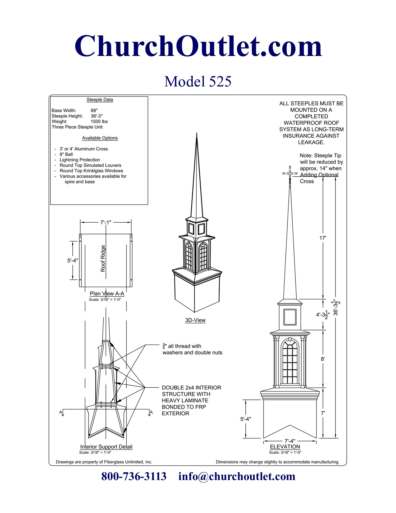 If you still have questions about purchasing a fiberglass steeple feel free to contact us.