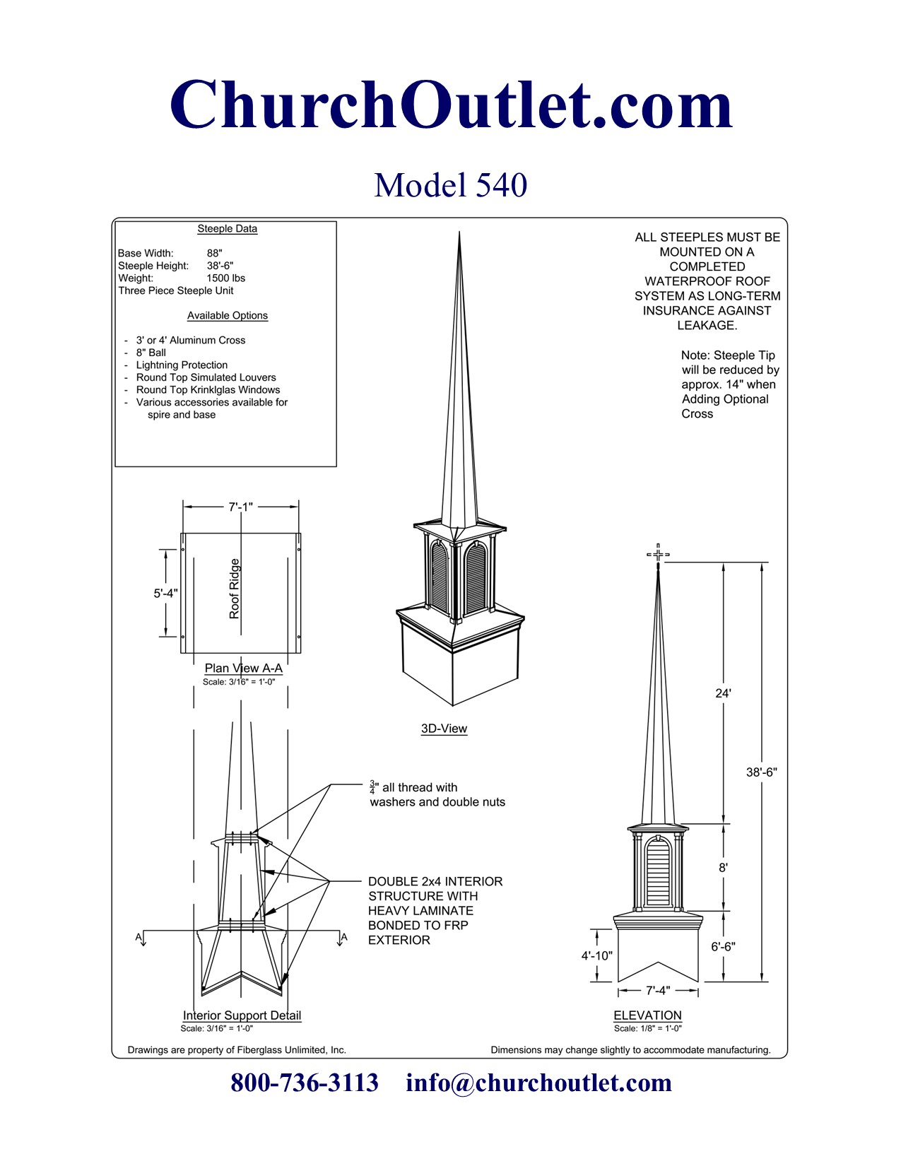 If you still have questions about purchasing a fiberglass steeple feel free to contact us.