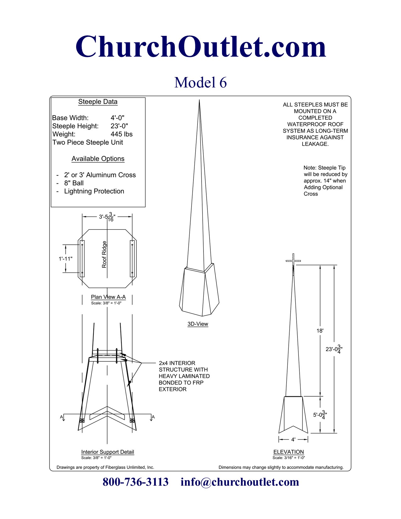 If you still have questions about purchasing a fiberglass steeple feel free to contact us.