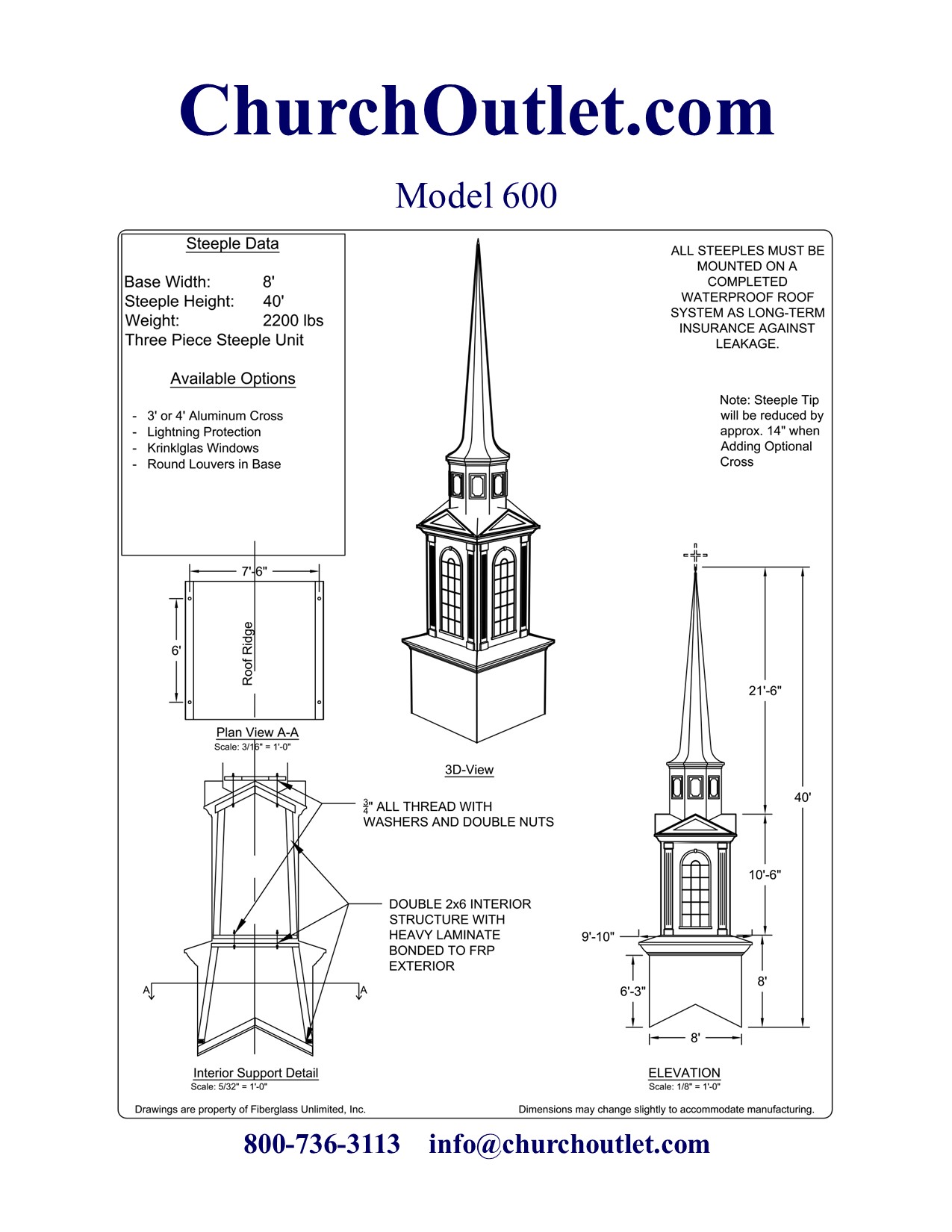 If you still have questions about purchasing a fiberglass steeple feel free to contact us.