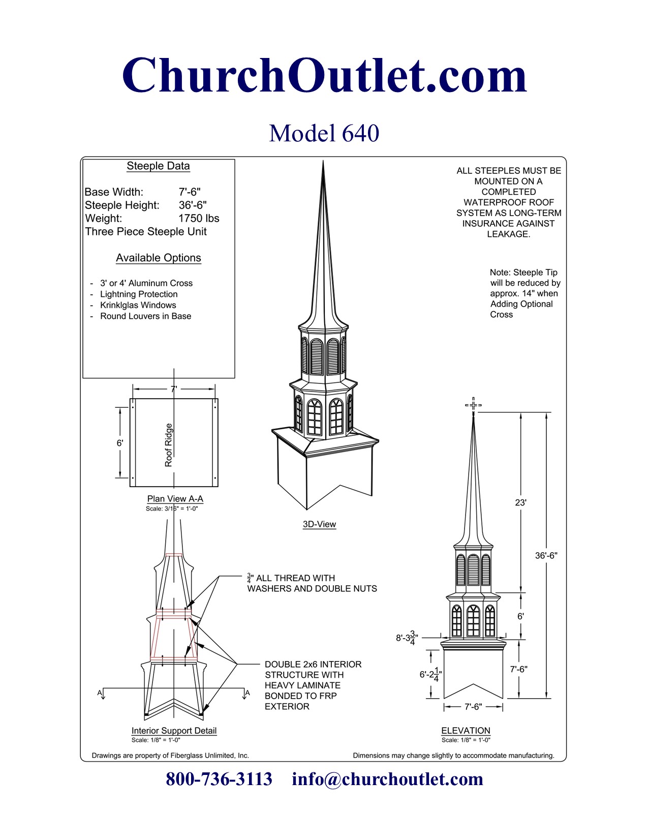 If you still have questions about purchasing a fiberglass steeple feel free to contact us.