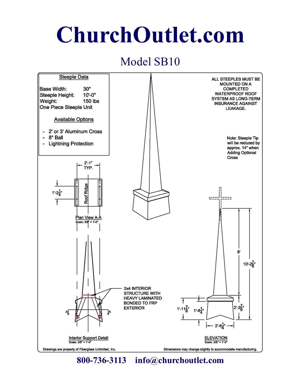 If you still have questions about purchasing a fiberglass steeple feel free to contact us.