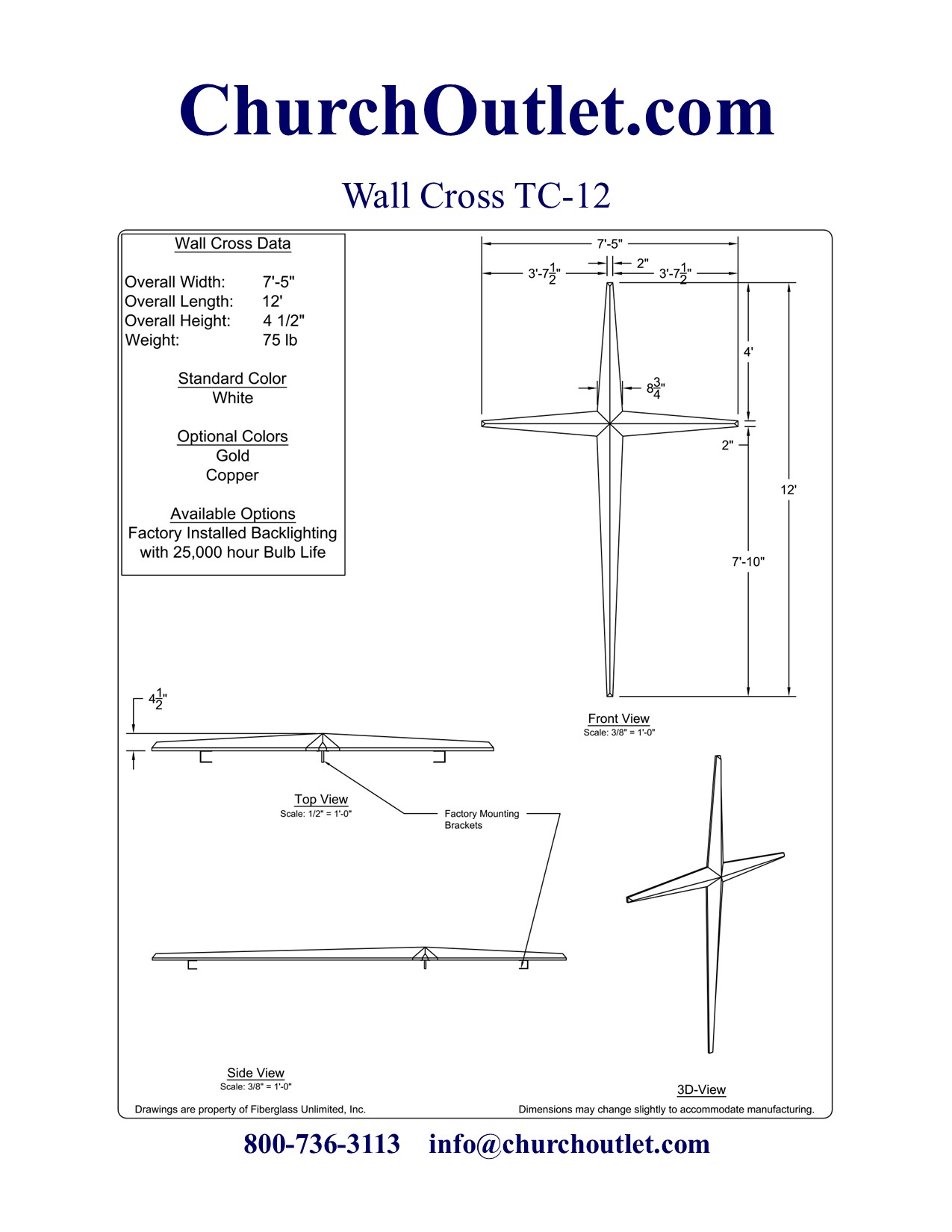 Church Outlet's quality Wall Crosses are an excellent way to beautify the interior or exterior walls of your church. Wall Crosses come in three primary materials: Fiberglass, Solid Oak, and Aluminum. The solid oak and aluminum crosses are made to order and can be manufactured in any size needed. The aluminum cross can be free standing or extend above roof line if needed. Call or email us info@churchoutlet.com for pricing on our wood or aluminum crosses.